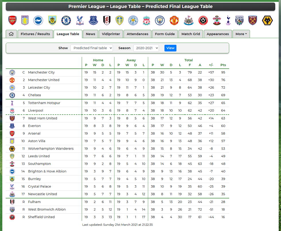 جدول ترتيب الدوري الإنجليزي الممتاز الحالي والكامل لموسم 2020/2021 ، يتم التحديث فورًا عقب كل مباراة.