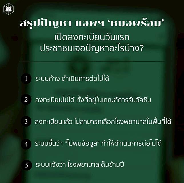 สรุปปัญหาลงทะเบียนรับวัคซีนผ่านแอพฯ 'หมอพร้อม' วันแรก ประชาชนเจอปัญหาระบบค้าง ลงทะเบียนไม่ได้ คิวนานข้ามปี.